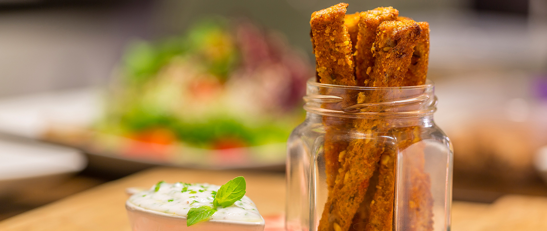 Cortar o pão de forma em tiras. Misturar o urucum ao azeite de oliva e com o auxílio de um pincel espalhar pelos pães. Polvilhar o queijo parmesão e levar para assar em forno pré-aquecido até dourar.